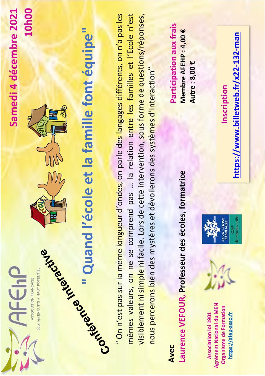 CONFÉRENCE interactive Quand l'école et la famille font équipe Renseignements et Inscriptions |