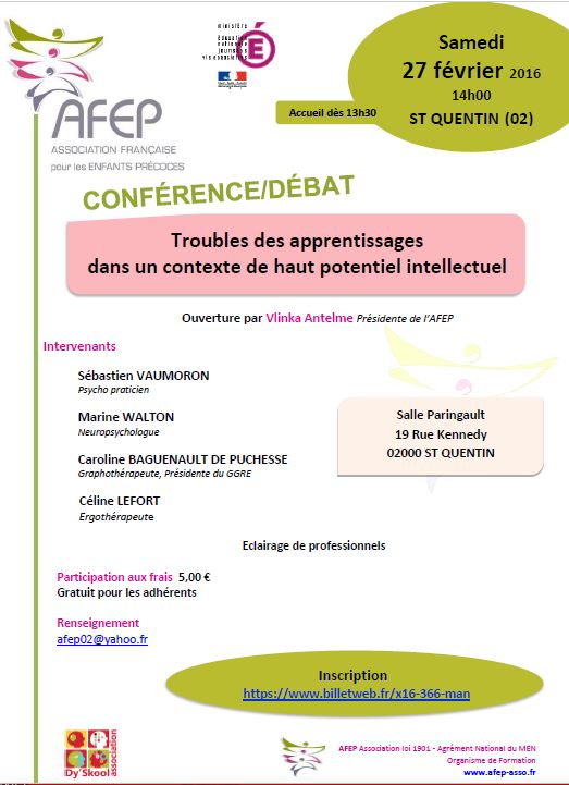 "Troubles des apprentissages dans un contexte de haut potentiel intellectuel"    Renseignements   et    inscriptions