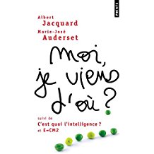 Je m'appelle Lucas Deschamp, j'ai onze ans et je suis le surdoué de la famille… Depuis que ma mère a rencontré François Rosen, on vit à huit sous le même toit : moi, ma mère, mon frère, ma sœur et puis François et ses trois enfants. Au début, c'était pas évident mais depuis l'aventure de cet été, les choses ont changé. Et j'ai décidé de raconter sur mon ordinateur l'histoire peu ordinaire de cette drôle de tribu… dont je fais partie. | | | | | "Moi, je viens d'où? suivi de "C'est quoi l'intelligence?" Albert JACQUARD et Marie-José AUDERSET